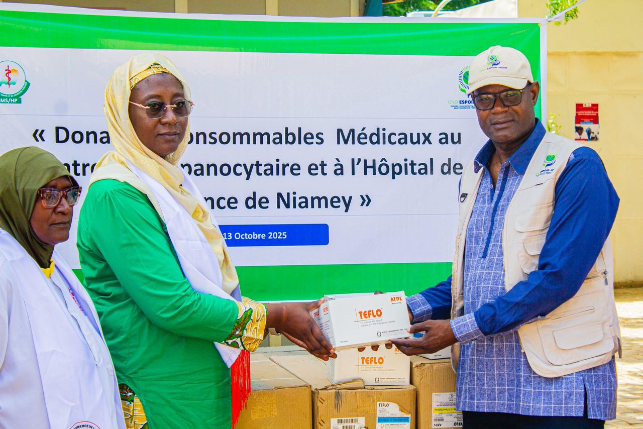 Dans le cadre de ses actions humanitaires et de son engagement constant pour le bien-être des populations, l’ONG Espoir Niger a procédé ce lundi 13 octobre 2025 à une donation de consommables médicaux au profit de deux structures sanitaires de référence : le Centre nationale de référence pour la Drépanocytaire de Niamey et l’Hôpital de Référence de Niamey.